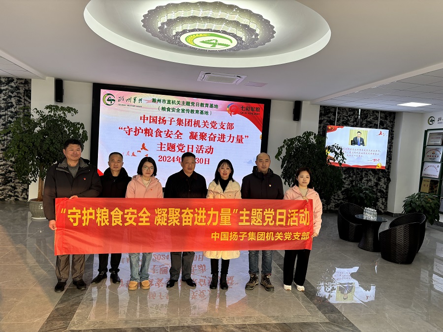 中國揚(yáng)子集團(tuán)機(jī)關(guān)黨支部開展“守護(hù)糧食安全 凝聚奮進(jìn)力量”主題黨日活動(dòng) 糧食安全,“國之大者”。為貫徹落實(shí)習(xí)近平總書記關(guān)于國家安全、糧食安全的重要指示批示精神,筑牢糧食安全意識(shí),1月30日下午,中國揚(yáng)子集團(tuán)機(jī)關(guān)黨支部組織黨員、入黨積極分子赴滁州市軍糧供應(yīng)站糧食安全宣傳教育基地開展“守護(hù)糧食安全